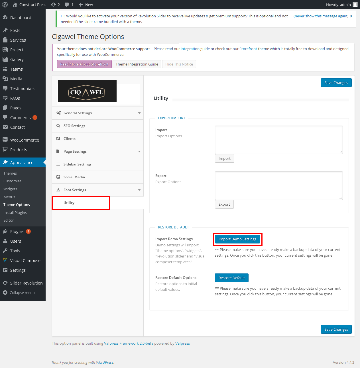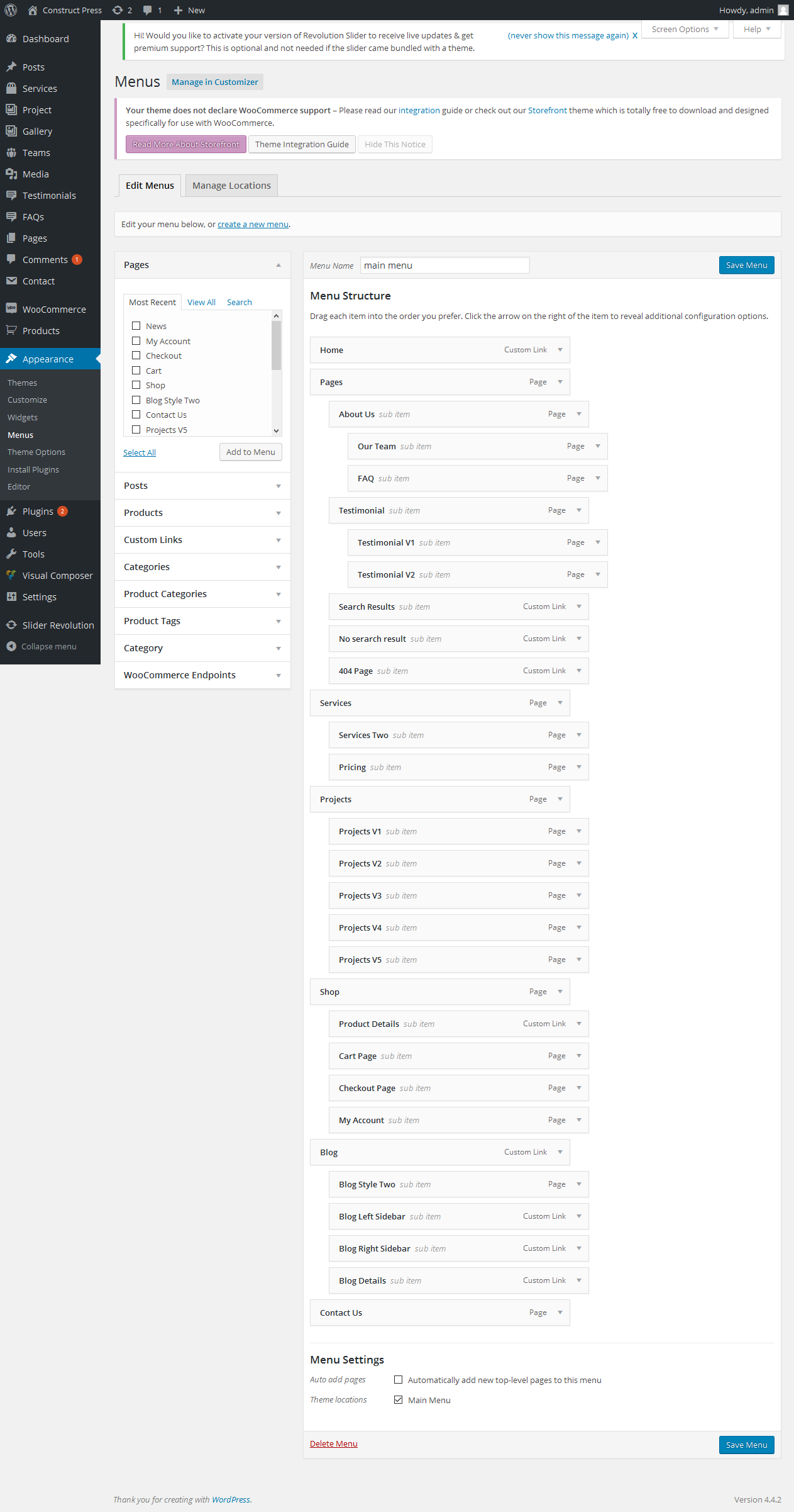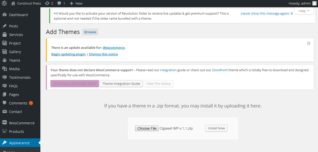 The constructpress WordPress theme compatible with custom and powerful plugins. First you want upload and activate these plugins from your WordPress dashboard panel. You will see a notice after installation constructpress theme on your dashboard like This theme requires the following plugin then click Begin installing plugin and download / install all recommended plugins...