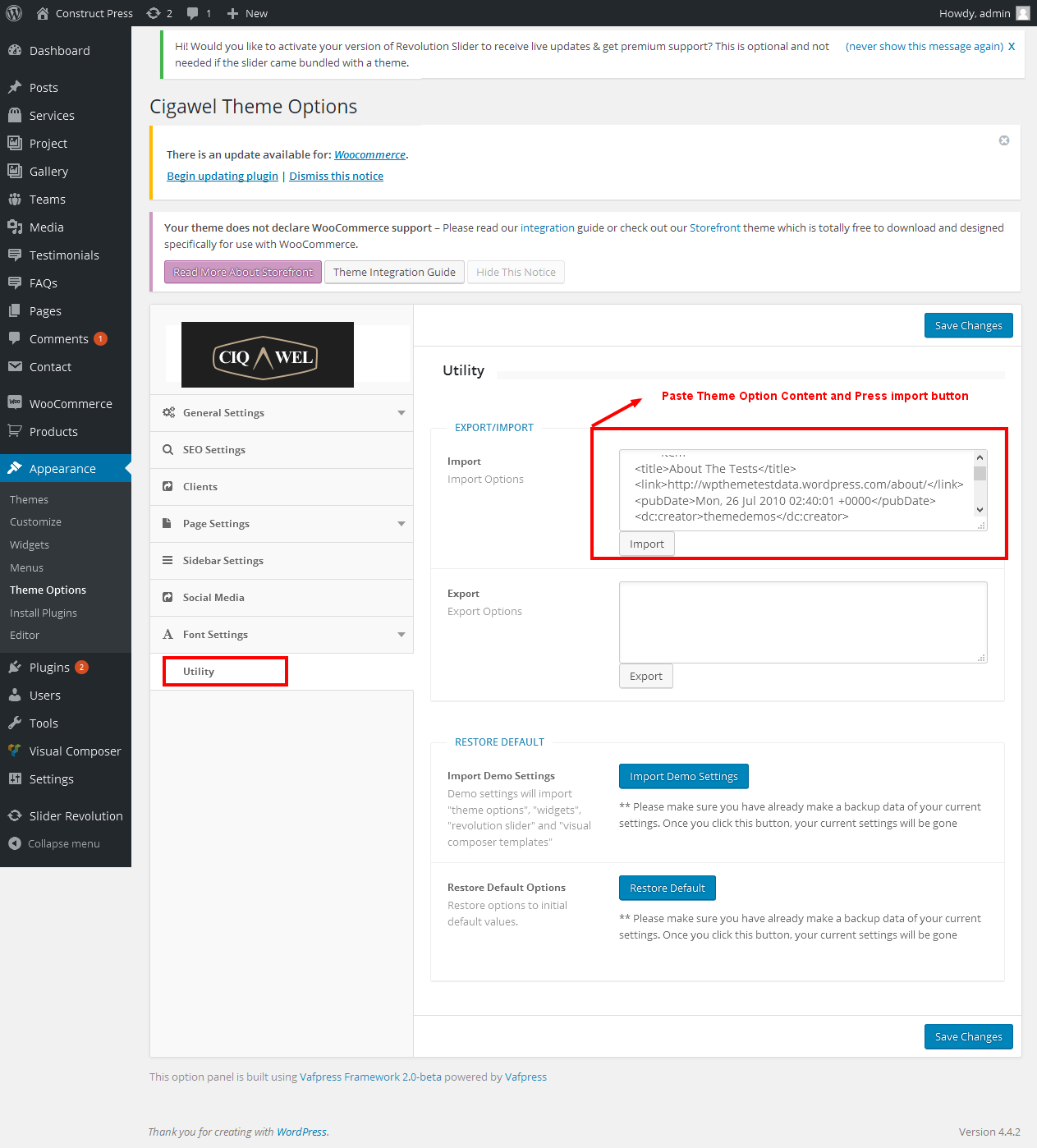 By cliclikng on above button you will get all posts,pages,themeoptions,shortcodes and slider.