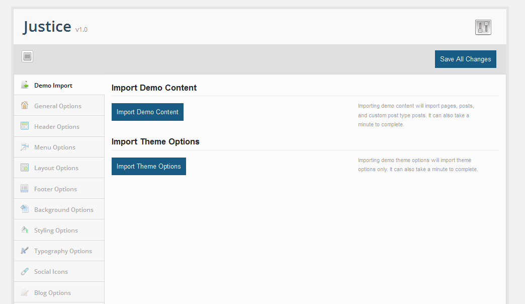 Our Theme Options Panel have too many options to make changes easily with your theme. Please click "Save All Changes" button to save your settings once you are done.