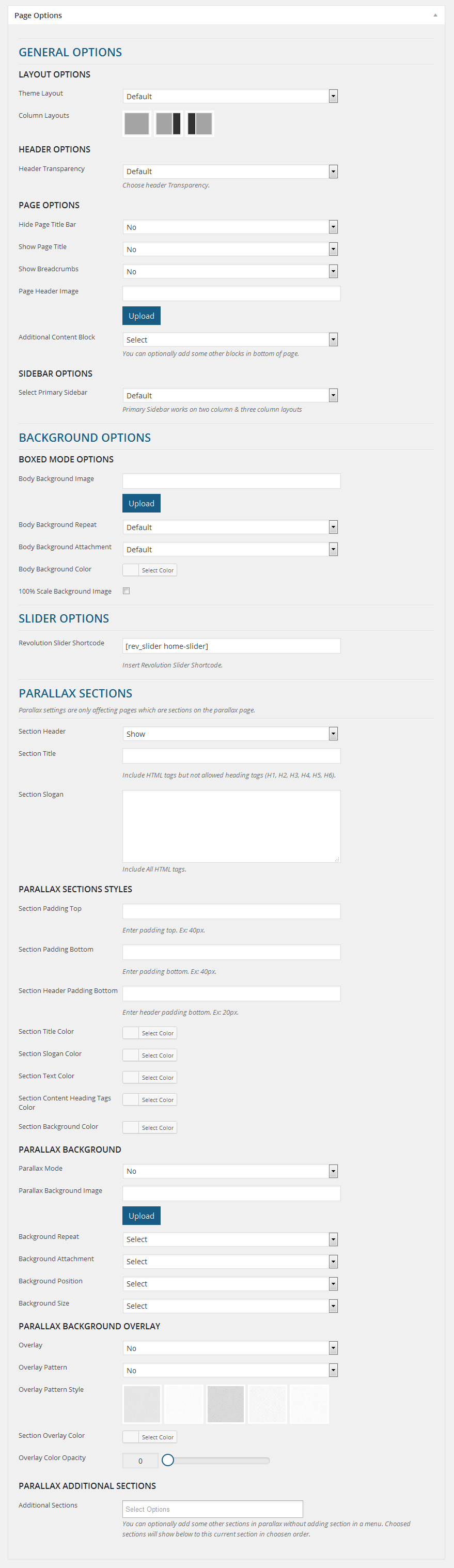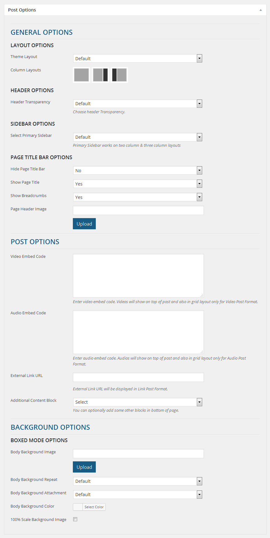 Also theme includes too many options for a post. You can easily change layout, sidebar and footer options differently to each posts.