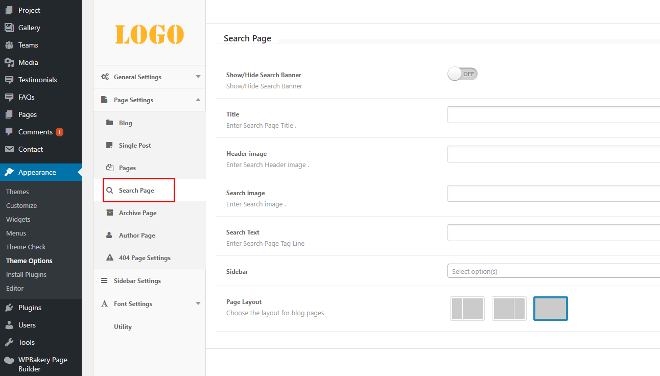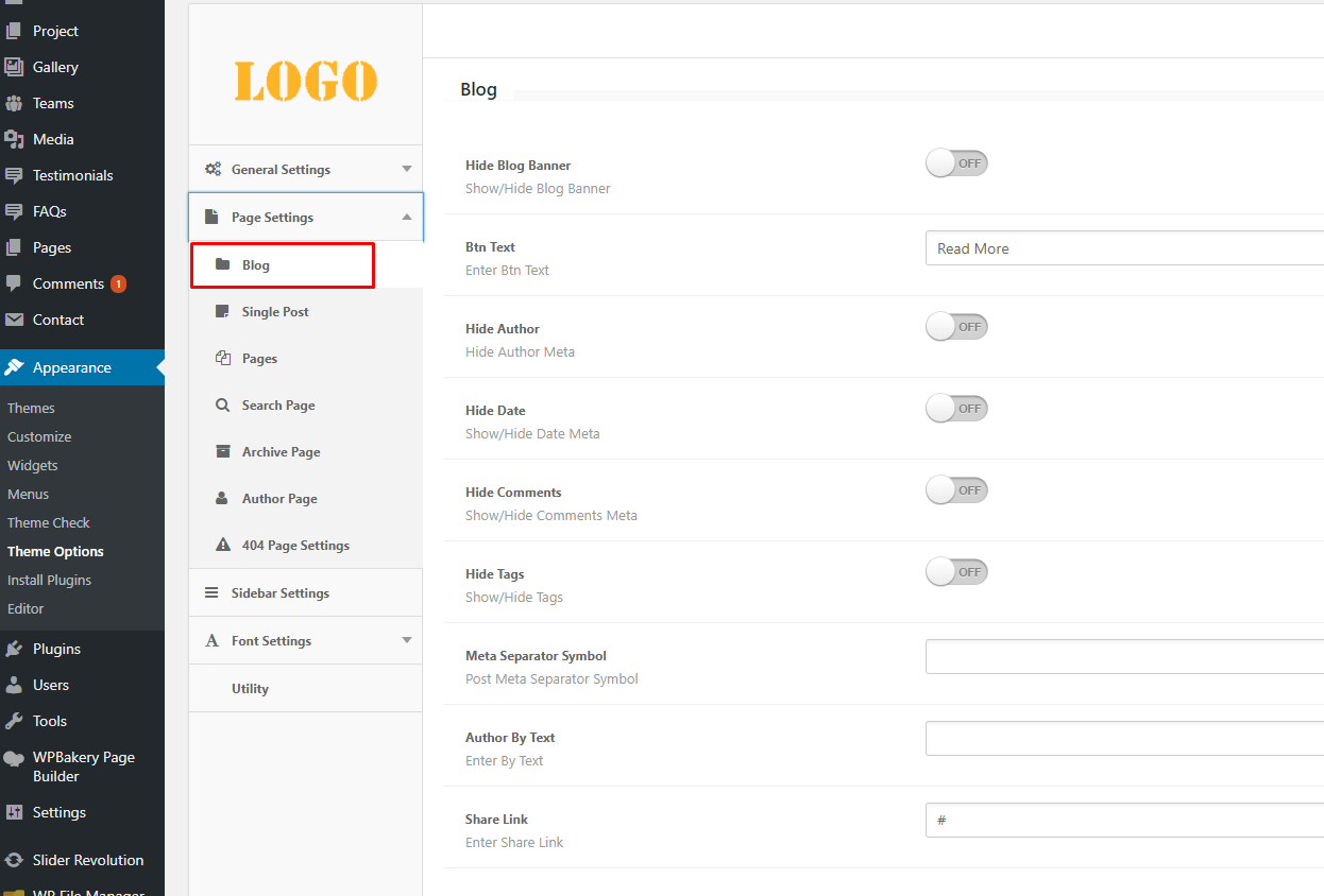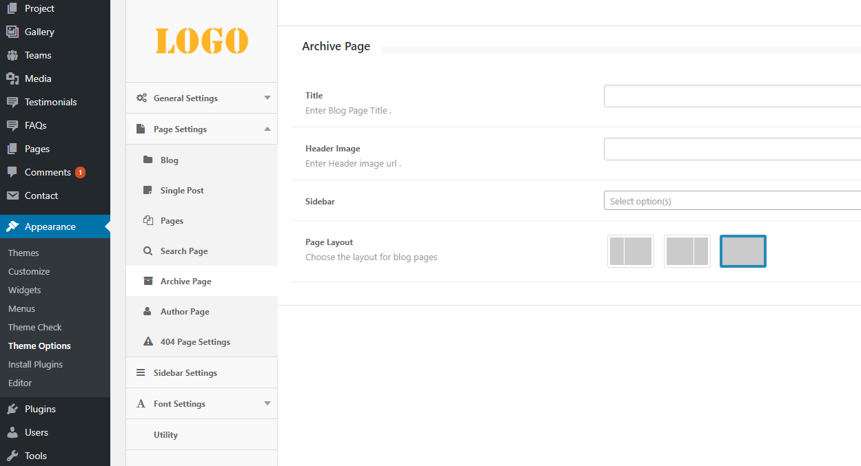 Blog layout designs could be managed by theme options page settings as shown in image below
