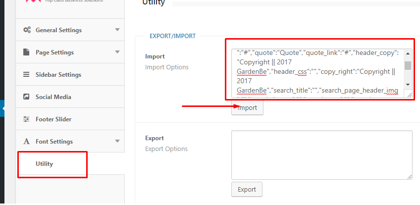 By cliclikng on above button you will get all posts,pages,themeoptions,shortcodes and slider.