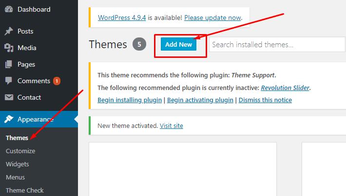 Once uploaded, activate the theme by heading to the “Themes” menu in the WordPress Dashboard. Locate the orenburg theme and hit “Activate”.