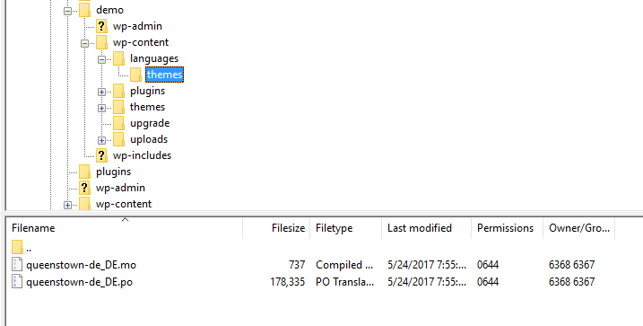 NOTE – Everytime you update the .po file, make sure to upload both .po and the compiled .mo file in "wp-content/languages/themes" folder and that they have the correct file name. The correct file name is the theme name and your language code. For example, queenstown-de_DE.po.